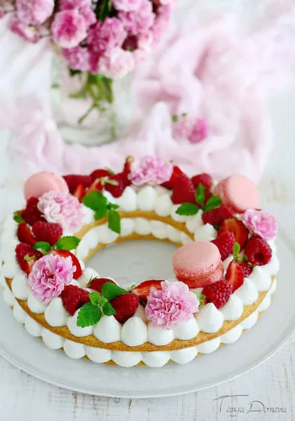 Декорирайте с пресни плодове, френски макарони и свежи рози.