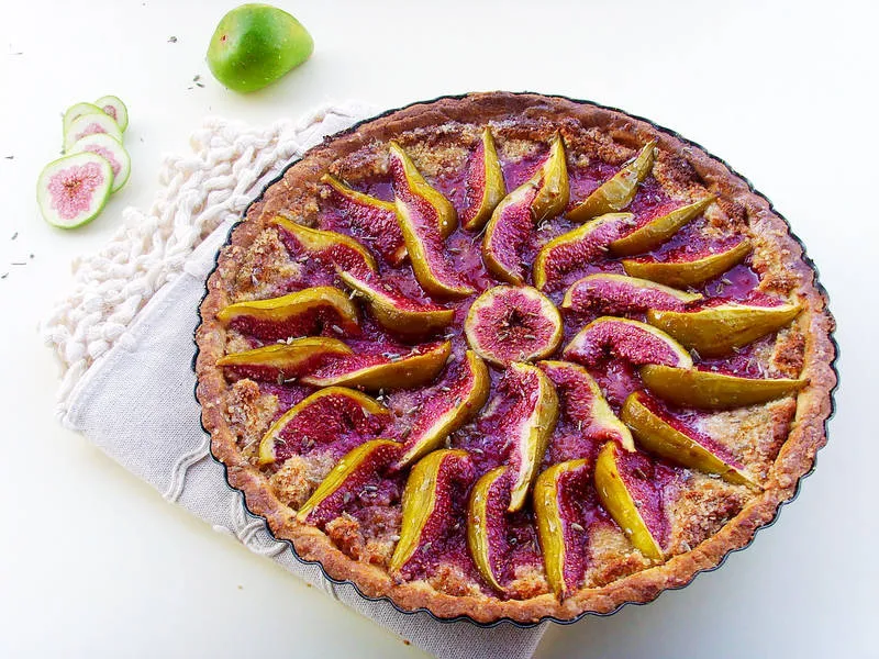 Тарт със смокини, бадеми и лавандула