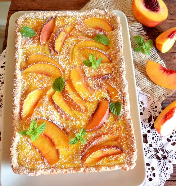 Crostata di pesche e crema cotta - фин маслен сладкиш с много крем и плодова сладост от прасковите