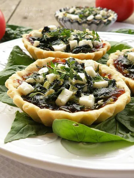 Рецептата, която ви представям е невероятна. Комбинация от сладко-солен вкус, който остава дълго на небцето. Приготвих тарталетките с пресен, свеж, био спанак, домашно сладко от лук и домашно козе сирене Козле, отлежало 120 дни.