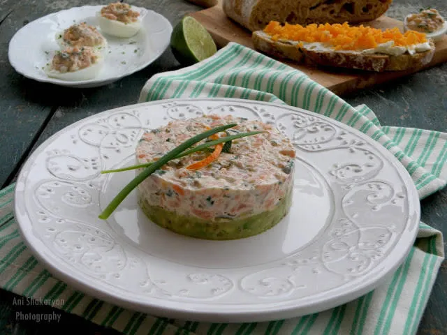 Тартар с два вида сьомга и авокадо
