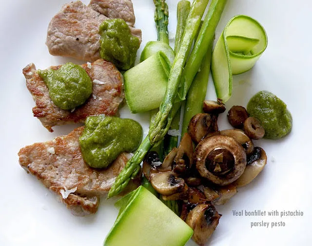 Телешкото филе е изключително крехко, а пестото от шамфъстък и магданоз бих нарекла изключително попадение ....