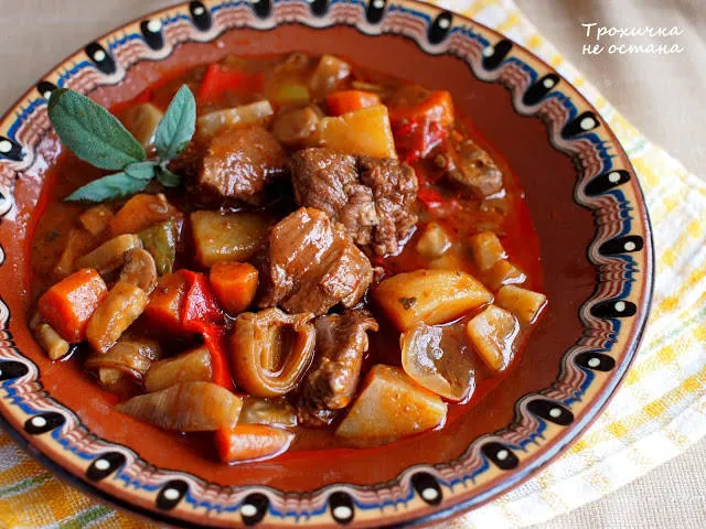 Нешо много вкусно - яхния с месо и много зеленчуци в гювеч