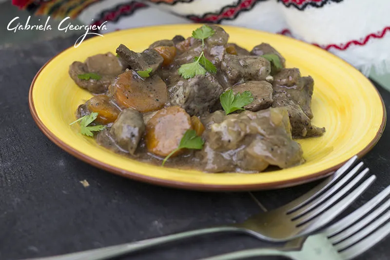 Вкусно телешко месо, ароматни манатарки и плътен сос: Телешко по бургундски