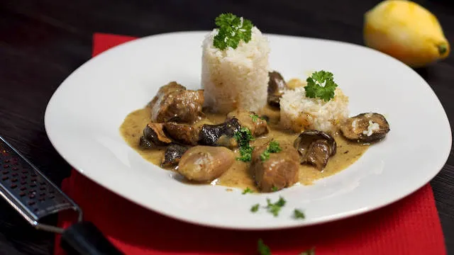 Телешко рагу със светъл сос по френски