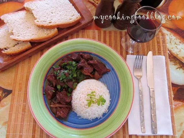 - 1 кг. телешко месо, почистено от ципите и нарязано на едри кубчета (вижте съветите по-горе)