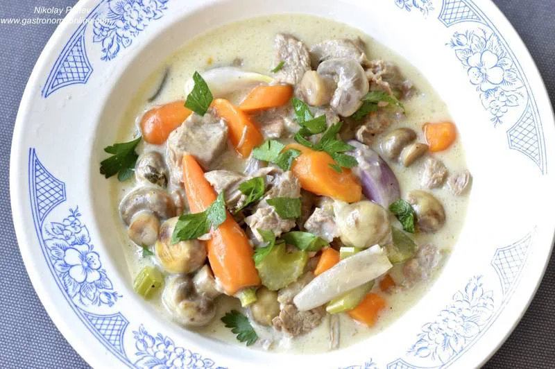 Blanquette de veau Телешко бланкет е класическо френска бяло рагу. "BLANQUETTE" е френски термин за рагу с бяло-светло месо (телешко, агнешко или птиче месо)