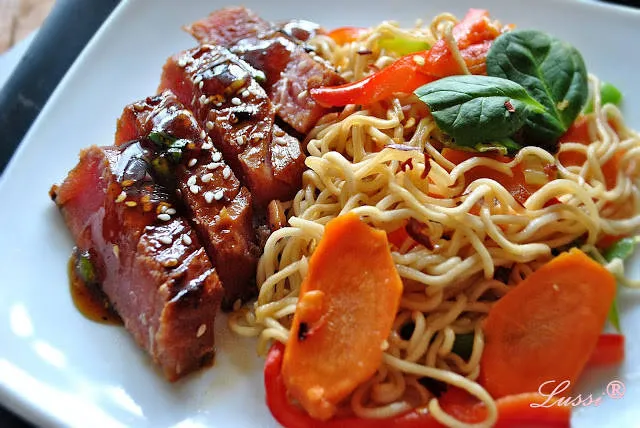 Терияки риба тон с пикантна нудел салата