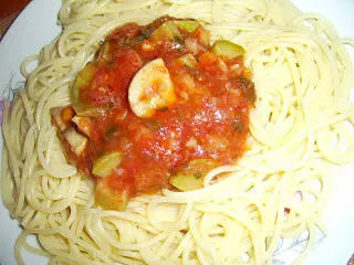 Тиквички и гъби с доматен сос