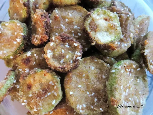 Тиквичките стават толкова хрупкави и златисти на фурна, поръсени със сусам и с много по-мало мазнина, ако са пържени