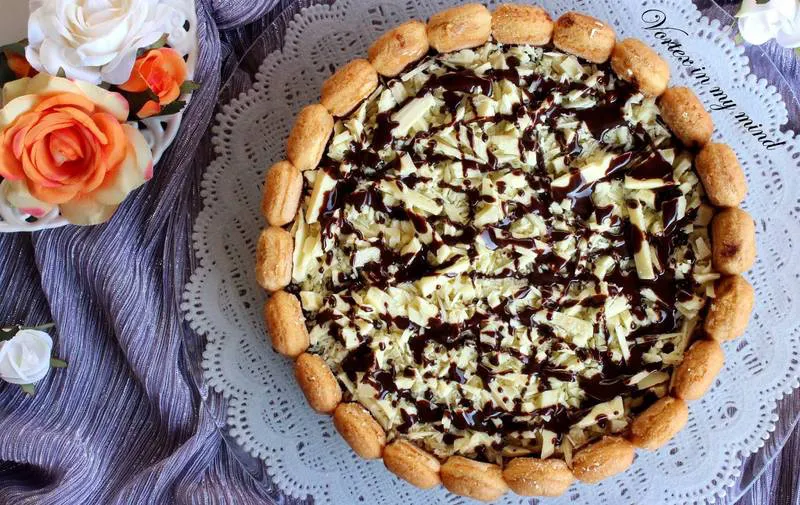 Рецепта за лесна торта, която се приготвя бързо и без печене. Този път комбинирах кремообразна млечна текстура с наситен вкус на кафе, пухкави бишкоти, нежен шоколадов ганаш и хрупкави парченца бял шоколад