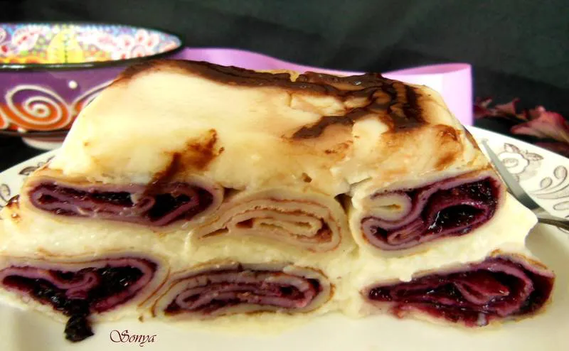 Торта от навити палачинки със сладко и ванилов крем
