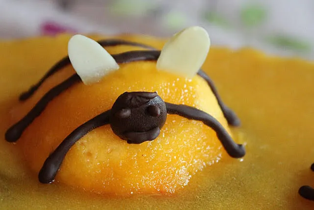 Ефектна бисквитена торта с крем и праскови, украсени като пчелички. Няма как да не зарадвате децата ;)