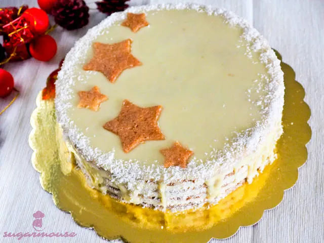 Такава трябва да бъде торта Рафаело – кокосов крем, хрупкава вафлена коричка, бадеми – носеща автентичния вкус на едноименните бонбони.