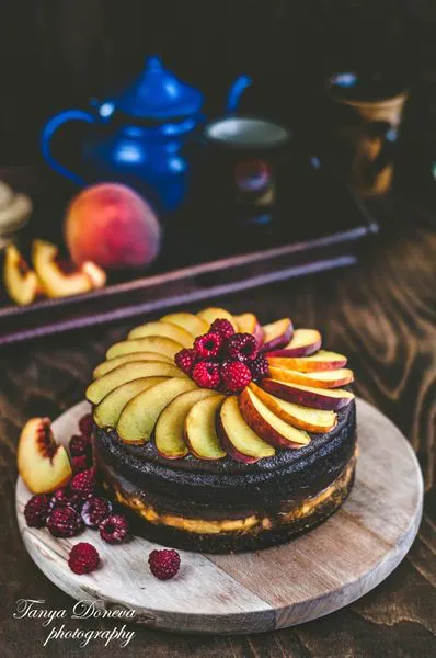 Гарнирайте с праскови и малини, ако ви харесва идеята.