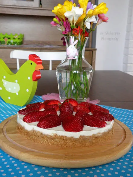 Торта с цедено кисело мляко, маскарпоне и ягоди