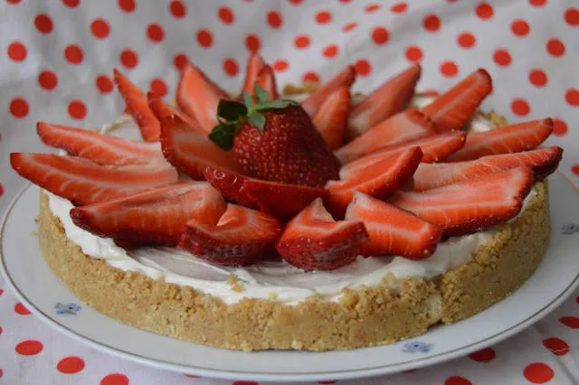Тората се оставя в хладилник за една нощ. На другия ден се украсява с резени ягоди