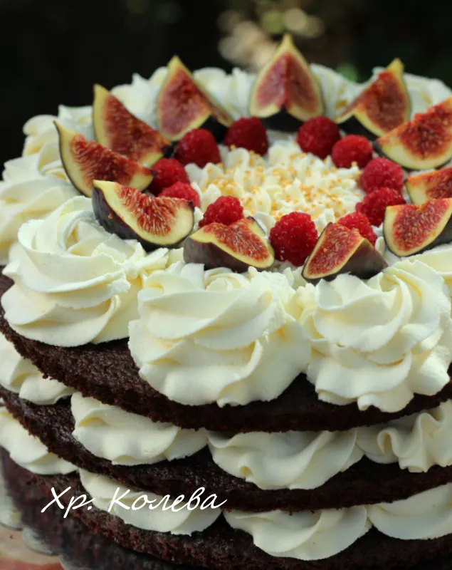 Торта с чийзкрем, малини и смокини