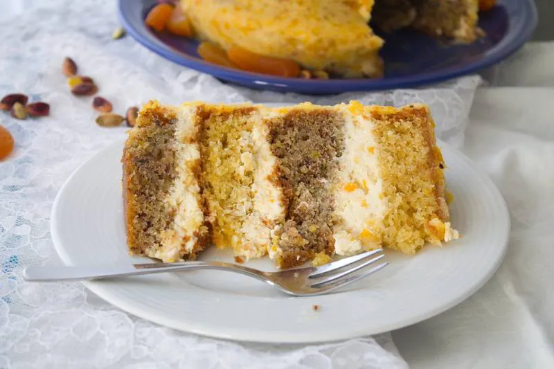 Торта с шамфъстък, лимон и сушени кайсии