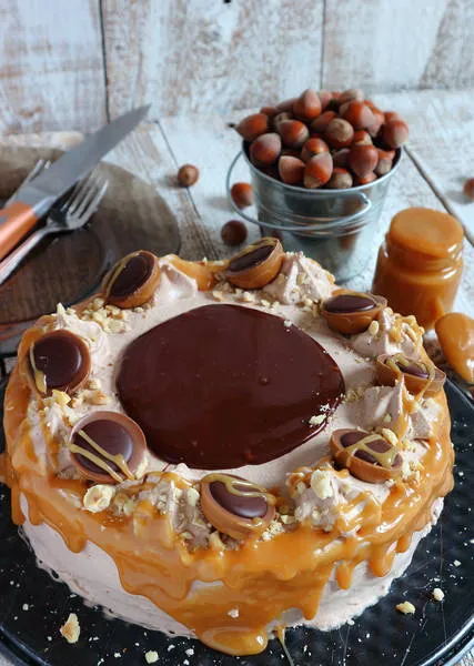 Това е една разкошна торта за всички, които обичат съчетанието на шоколад, лешници и карамел.