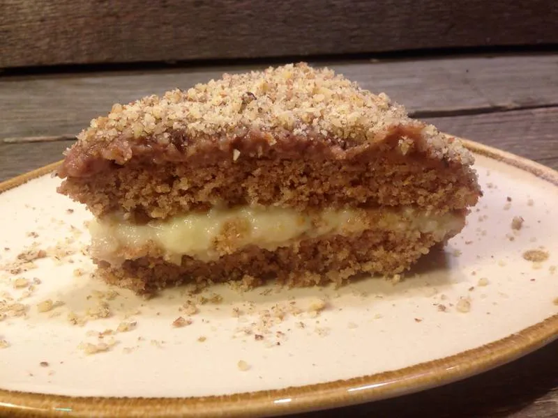 Ето я и нея - тортата от моето детство. Без брашно, с много мек крем и наситен вкус на орехи.