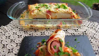 Много лесно и бързо решение за вечеря. Хот - дог, но не познатият ни, а в плоска питка - тортила, wrap или просто дюнер питка