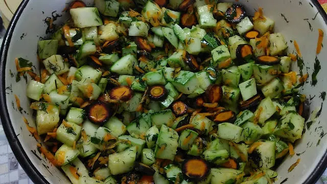 Направете повече буркани за зимата - това е една от предпочитаните салати за ракия. Става и като гарнитура. Може да се сложат повече моркови и копър.
