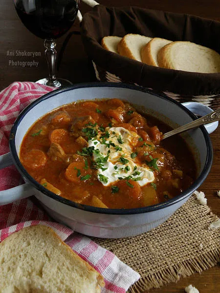 Gulyás Извънредно вкусно и ароматно ястия. Особено поднесено с лъжица заквасена сметана и чаша червено вино, в студеното, зимно време. Не го пропускайте.