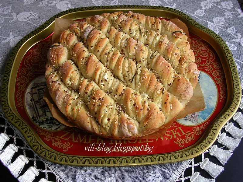 Ето моят вариант на тази вкусна и ароматна питка със сирене и розмарин - много лесен и много ефектен.