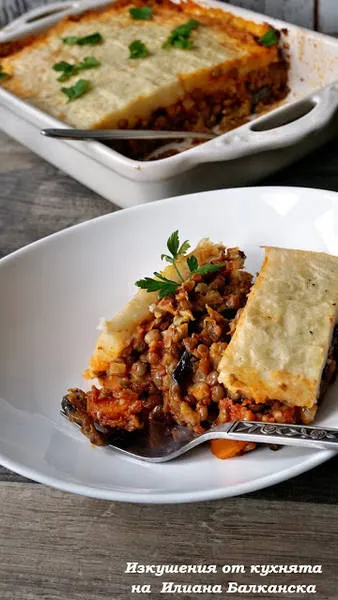 Вегетарианска мусака с патладжан и леща