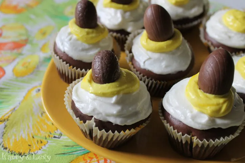 - 12 малки шоколадови яйца (ако желаете да сложите по едно яйце и в сърцевината на всяко сладкишче, ще ви трябват 24 шоколадови яйца)