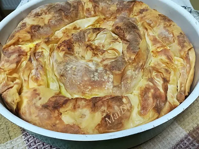 Вкусна баница. Корите се навиват една след друга „ на охлюв“ / на спирали/.