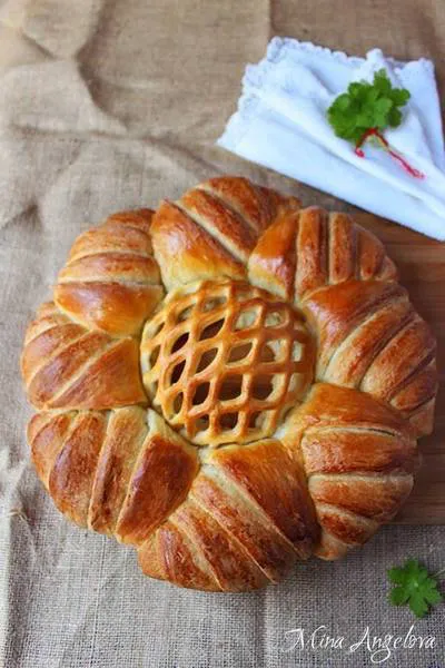 - *** От изрязаното тесто можем да изрежем допълнително листенца, цветенца, пеперудки или да сътворим някакви плетеници, които да поставим в основата около розетката, но и без допълнителни детайли, питката си е достатъчно ефектна ;) (ама пък съм и скромна?!)