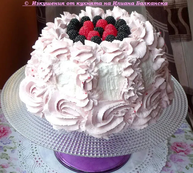 Вита торта с малиново сладко и сметана