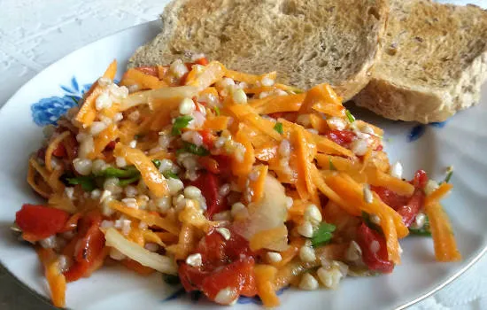 Рецепта за вкусна, здравословна, нискокалорпична и лесна салата с елда и зеленчуци. Едно чудесно предложение за есента и зимата.