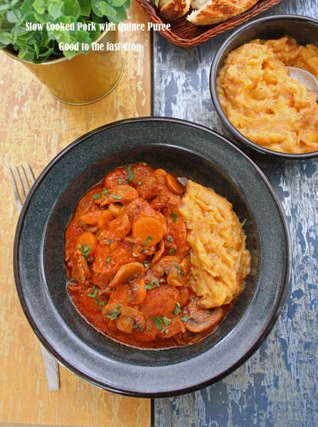 Задушено свинско с пюре от дюли