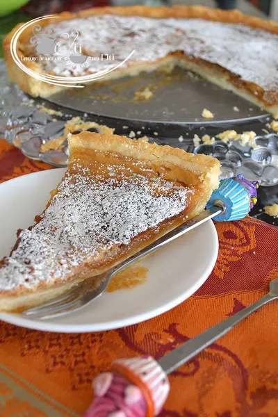 Хрупкав блат от маслено тесто поръсен с кафява захар и сметана.