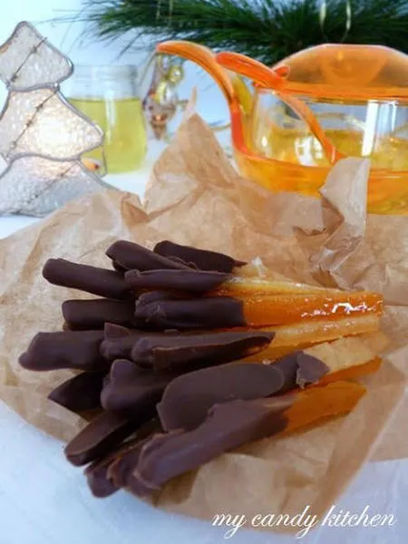 Захаросани портокалови корички с шоколад