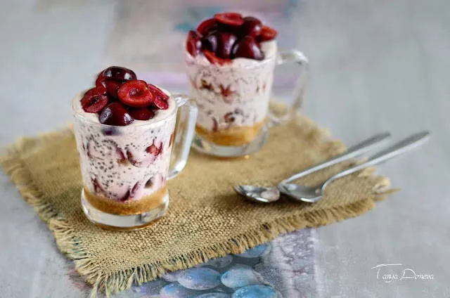 Закуска с домашно кисело мляко, чия и череши