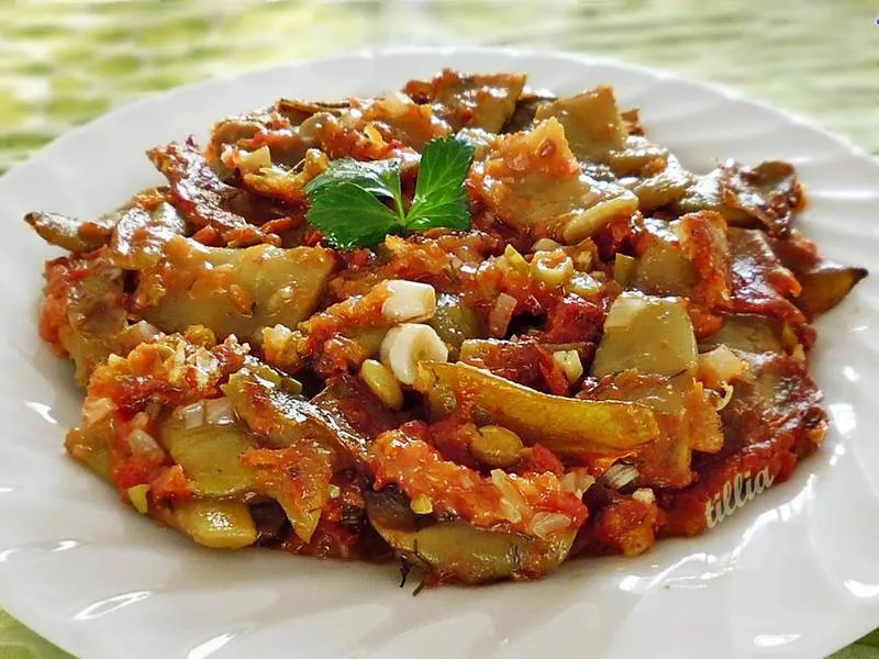 - 2-3 с.л. домати от консерва , или както при мен - от консерва печени чушки и домати; (или 1 с. л. доматено пюре)
