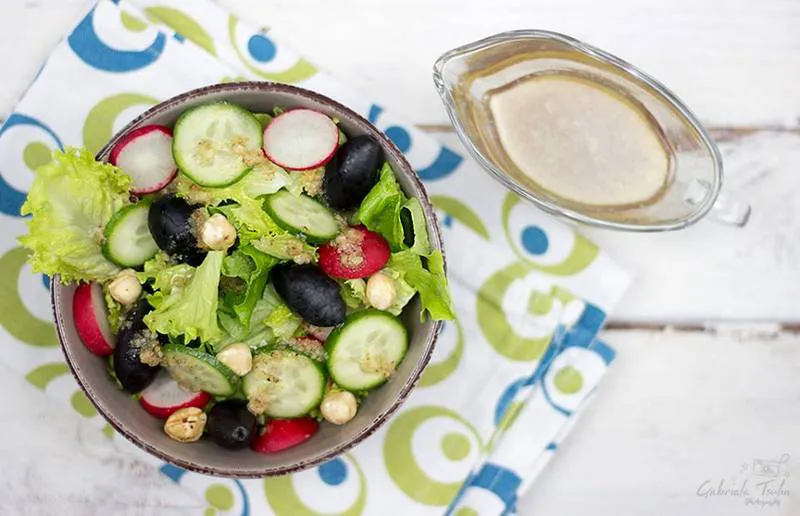 Хрупкава салата с вкусен и ароматен дресинг от орехи и пармезан