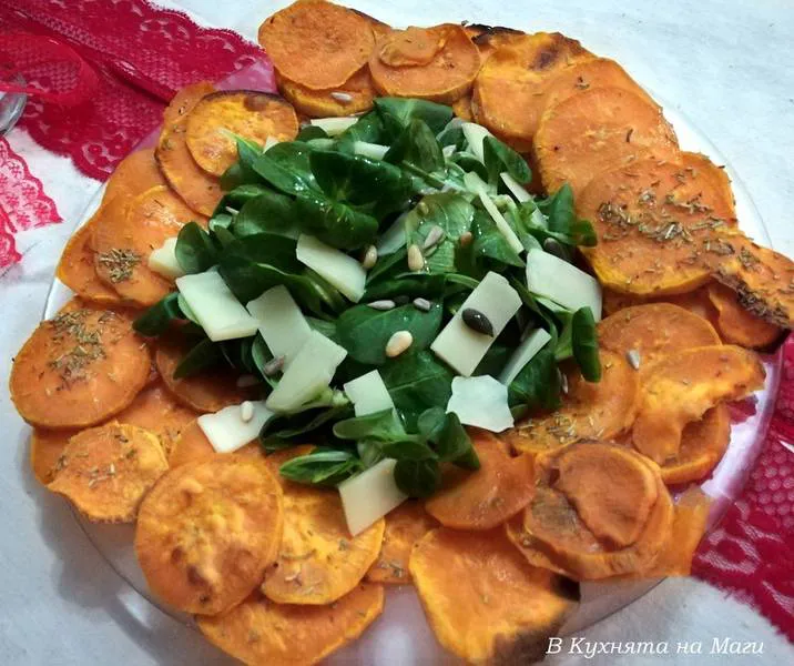 Зелена салата със запечени сладки картофи