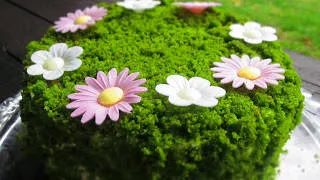 Тази торта прилича на една зелена полянка осеяна с цветенца
