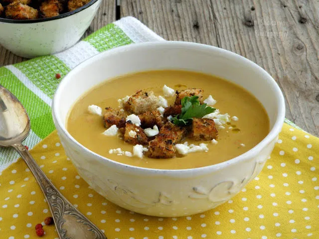 Винаги е добра идея за вечеря за децата. Прибавям букет от свежи зеленчуци, магданоз и подправки. А крутоните стават бързо