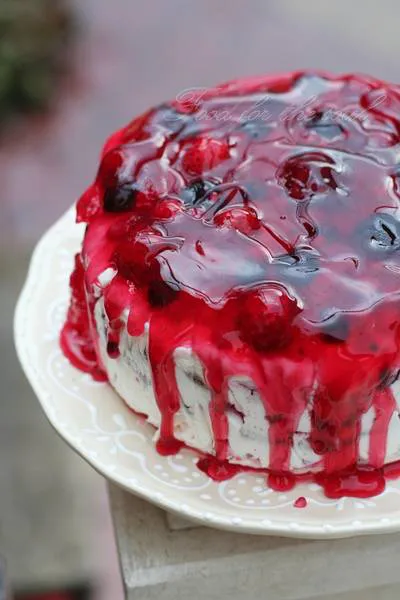 Този десерт е за всички, които обичат по-леките сладкиши. Може да го приготвите както с пресни, така и със замразени плодове. Приготвя се много лесно и бързо, просто трябва да имате повече търпение, докато престои необходимото време в хладилника. Дори да не постигнете съвършен резултат, бъдете уверени, че тортата ще бъде изядена с удоволствие и ще ви помолят да направите пак!